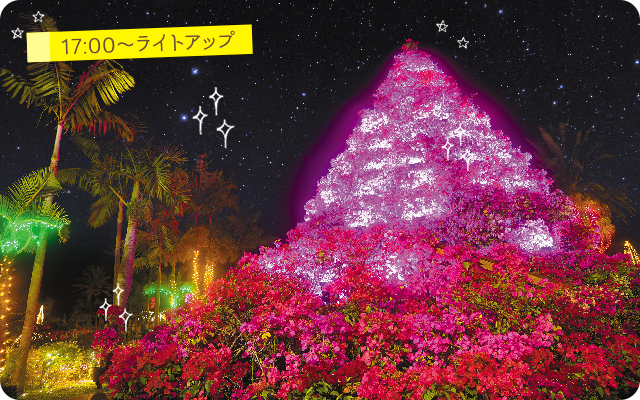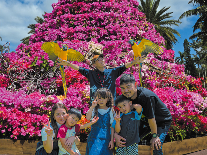 The Bougain Tower is one of Japan’s largest Bougainvillea towers, standing about 8 meters tall.