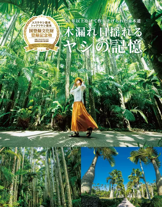 東南植物楽園の「ユスラヤシ並木」と「トックリヤシ並木」が、